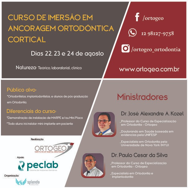 CURSO DE IMERSÃO EM ANCORAGEM ORTODÔNTICA CORTICAL ministrado pelos professores Dr. José Alexandre Kozel e Dr. Paulo Cesar da Silva.