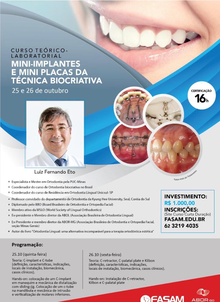MINI-IMPLANTES E MINI PLACAS DA TÉCNICA BIOCRIATIVA ministrado pelo professor Dr. Luiz Fernando Eto.