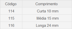 – Comp. haste 11 mm, 15 mm e opcional 24 mm