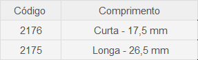 – Comprimentos 17,5 mm (curta) e 26,5 mm (longa)