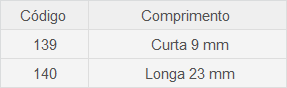– Disponível nos comprimentos de haste curta (9 mm) e longa (23 mm)
