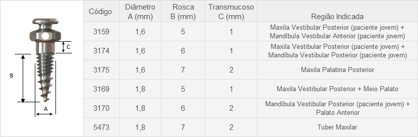 – Corpo autoperfurante, dispensa, na maioria dos casos, o uso de broca para sua inserção. A critério do profissional pode-se usar a broca 1,1 mm, disponível no Kit Cirúrgico Ortodôntico, para marcação e início da introdução;