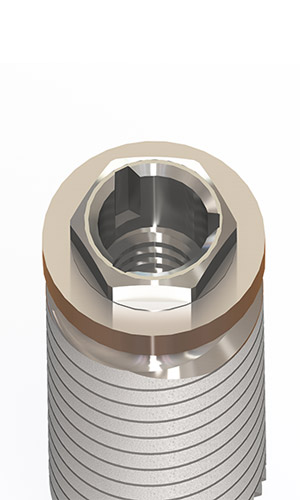 ‐ Interface hexágono externo com encaixe interno triangular que confere maior resistência ao torque de inserção, preservando a integridade do hexágono e garantindo uma perfeita adaptação protética