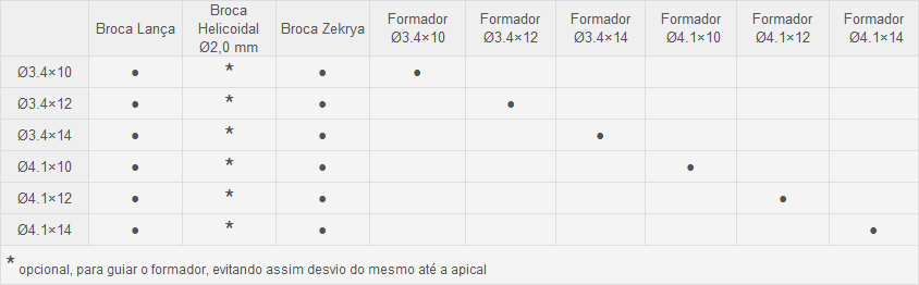 – Indicado para restaurações unitárias e múltiplas em osso tipo I, II, III e IV em situações especiais de pacientes com perdas dentárias há longo tempo e que resultaram em maxilares atróficos (espessura óssea inferior a 3,0 mm). O implante também tem seu uso indicado em situações de espaço exíguo entre raízes e na transposição do nervo alveolar inferior;