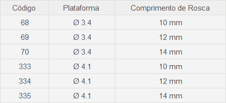 – Os procedimentos protéticos seguem os dos implantes de hexágono externo, utilizando-se os mesmos componentes protéticos. Apenas o comprimento da rosca do parafuso protético e dos componentes que possuem rosca é 2,0 mm mais curto que os correspondentes dos implantes HE convencionais.