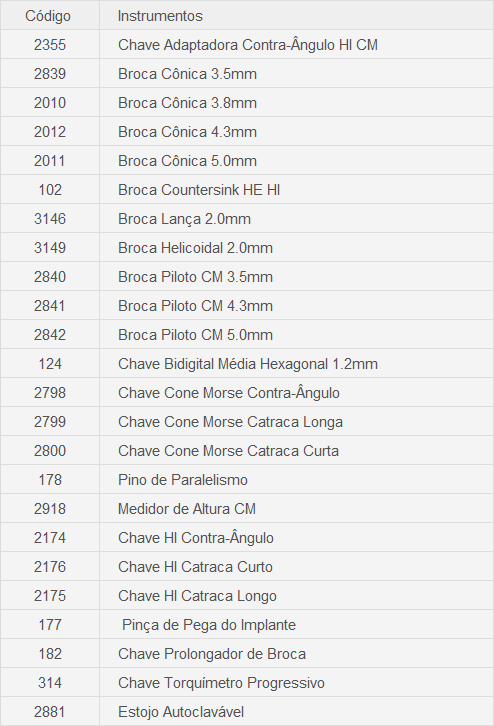 Kit Cirúrgico desenvolvido especialmente para instalação dos Implantes Conexão Interna Cone Morse e Hexágono Interno.